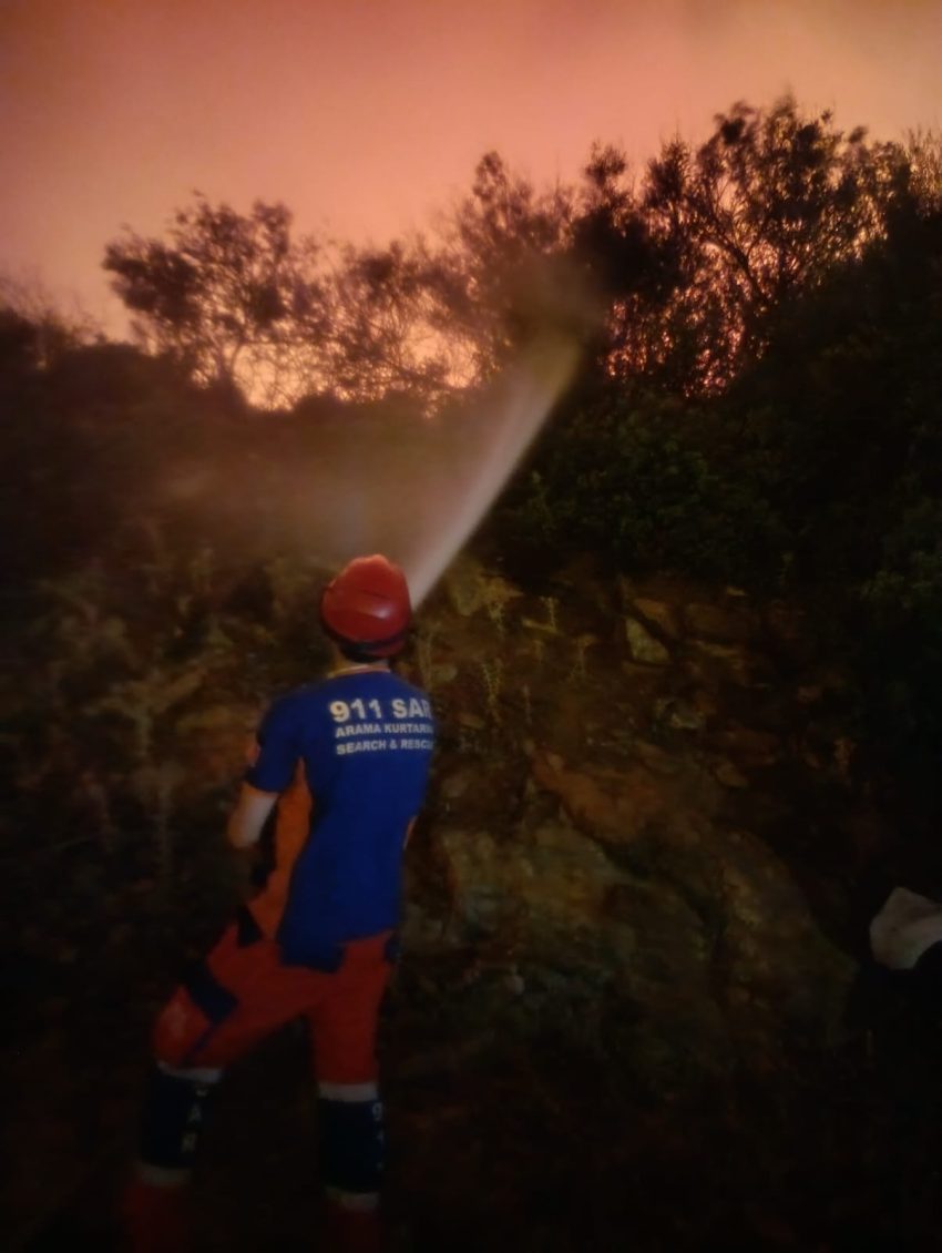 Yangının başladığı andan itibaren, 911 Arama Kurtarma Derneği olarak 25 gönüllümüzle birlikte bölgeye intikal ettik. Yangının yayılmasını önlemek, can ve mal kaybını en aza indirmek amacıyla saha koordinasyonu, tahliye desteği, ilk yardım müdahaleleri ve lojistik destek faaliyetlerini yürüttük. Yerel itfaiye, Orman Genel Müdürlüğü ekipleri ve diğer sivil toplum kuruluşlarıyla iş birliği içinde etkin ve organize bir çalışma gerçekleştirdik.