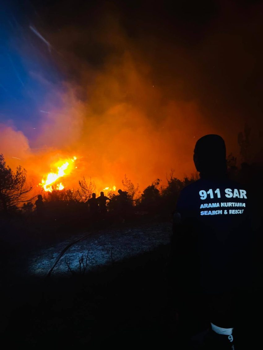 911 Arama Kurtarma Derneği  İzmir,Bandırma,Erdek ve Kuş Adası ekiplerimiz İzmir,Kuş adası,Buca,Kadife Kale Germiyanlı,Ildır, Davutlar  Alaçatı vb  noktalarda çıkan/çıkarılan yangınlara  Orman işletme ve itfaiye ekiplerimize yangın söndürme faaliyetlerinde destek vererek  Yeşil Vatan savunmasında  en ön saflarda yer almıştır.Detletimizin  yangın söndürme ekipleri karadan ve havadan da  destek vererek  yangınların söndürülmesinde  ön planda yer almıştır.Gönüllü STK lar ve çevre bölgelerde yaşayan vatandaşlarda çalışmalara destek vererek yangının söndürülmesinde rol almışlardır.