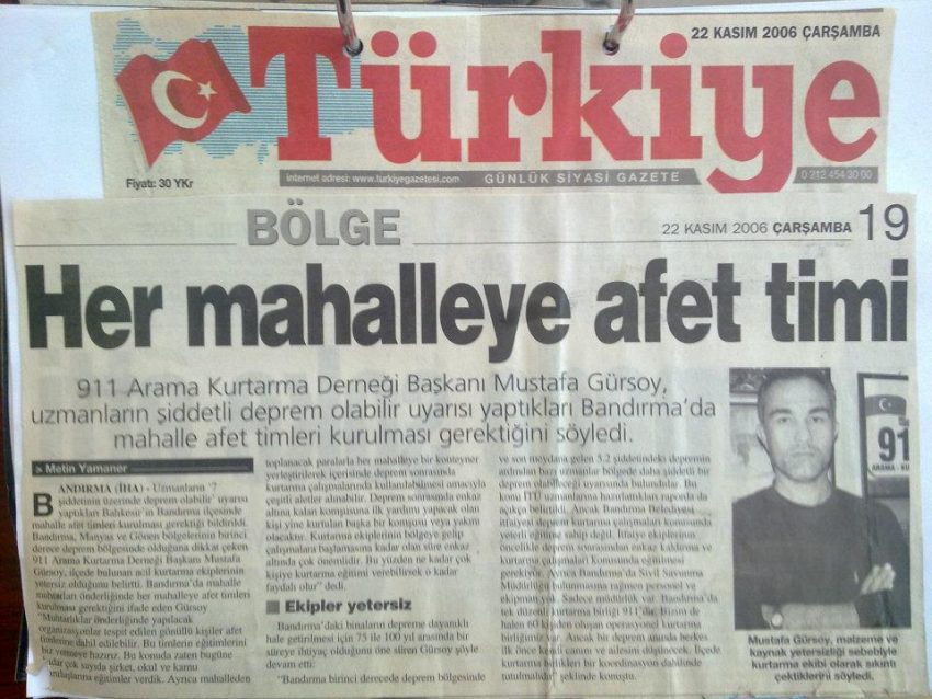 Olası Bir Afet Anında İlk Üç gün Kent insanlarının kendi Kendilerini Kurtardıkları göz Önüne Alınır ise Mahalle Afet Timlerinin Kurulması Elzem Bir Olaydır. 2003 Yılında İstanbul Valiliğine de Bir rapor olarak Sunduğumuz  2006 yılın da da tekrar dile getirdiğimiz  fırsat buldukça da önereceğimiz bu projenin En kısa sürede tüm Türkiye de Her kentte uygulanması desteklenmesi gereken Bir projedir.Profesyonel kurtarma ekipleri olay yerine gelene kadar mahalle afet timleri kendi mahallelerinde  eğitimli bireyler olarak hayat kurtarabilirler.Olası İstanbul Depreminde  Arama urtarma ekiplerinin yetersiz kalacağı bir gerçektir. Bu açıdan düşünecek olursak Mahalle Afet Timleri Önemli Bir projedir.911 Arama Kurtarma Derneği Olarak her alanda  her platformda bilgi paylaşımında bulunmaya vatandaş ve yetkilileri uyarmaya   devam edeceğiz..
