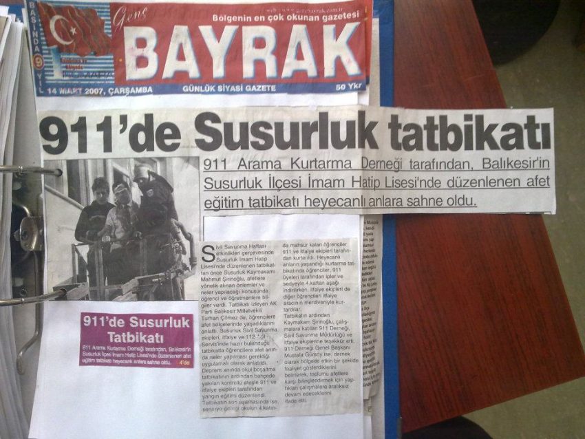 Susurluk İmam Hatip Lisesinde 911 Arama Kurtarma Derneği Olarak Temel Afet Bilinci Eğitimleri Verilerek Deprem Tahliye Tatbikatı Gerçekleştirildi.Seminer Esnasında Seminerimizi İzlemeye Gelen Balıkesir Ak parti Millet Vekili Sayın Turhan Çömez Öz Verili Çalışmalarımızdan Dolayı Ekibimize Teşekkür Etti.Tatbikatın Sona Ermesi İle Birlikte Merkeze Dönüş Yapıldı.